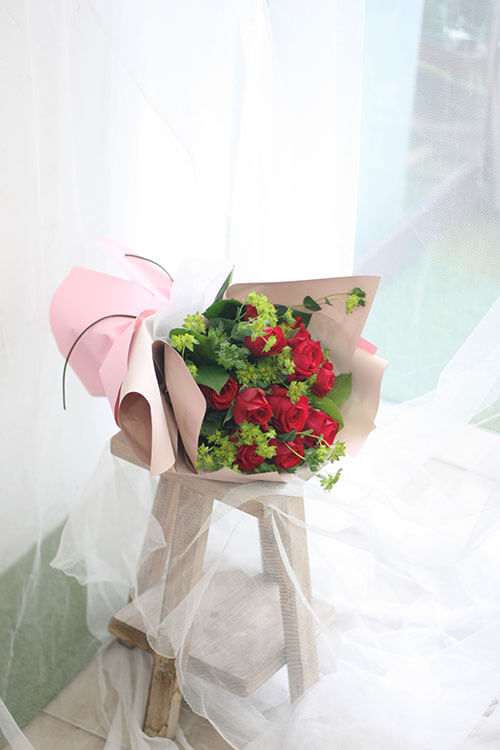 꽃다발 001 – 심플 레드로즈 핸드타이드