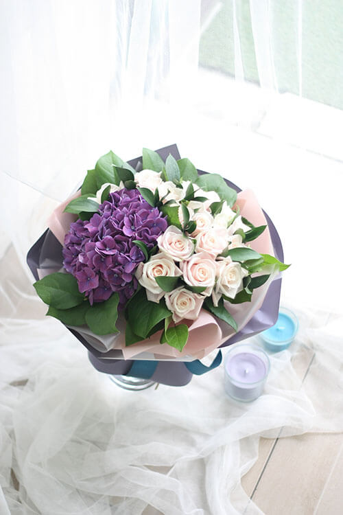 꽃다발 041 – 수국 장미 혼합 기념일 꽃다발