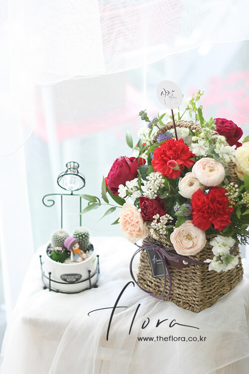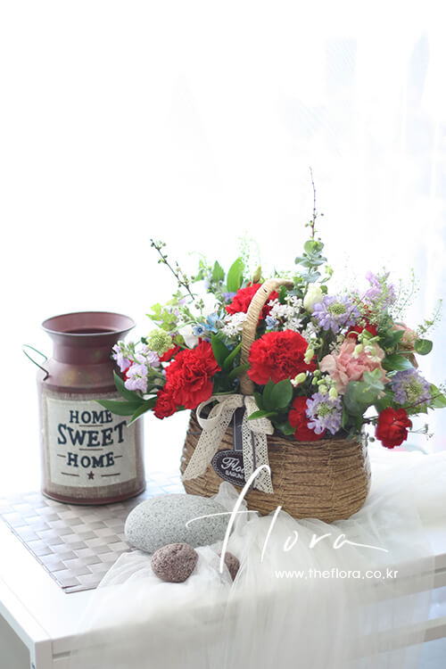 꽃바구니 023 – 레드컬러 카네이션 혼합 꽃바구니 고급형