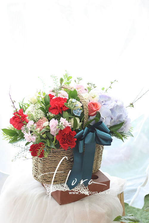 꽃바구니 024 – 수국 & 레드 카네이션 고급 꽃바구니